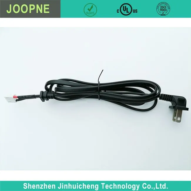 A 2 ágú, könyökös tápkábelt 120 V-os váltóáramú áramforrásokhoz tervezték, ami Észak-Amerikában a szabványos lakossági feszültség. Egyes vezetékek 240 V AC feszültségre is alkalmasak.